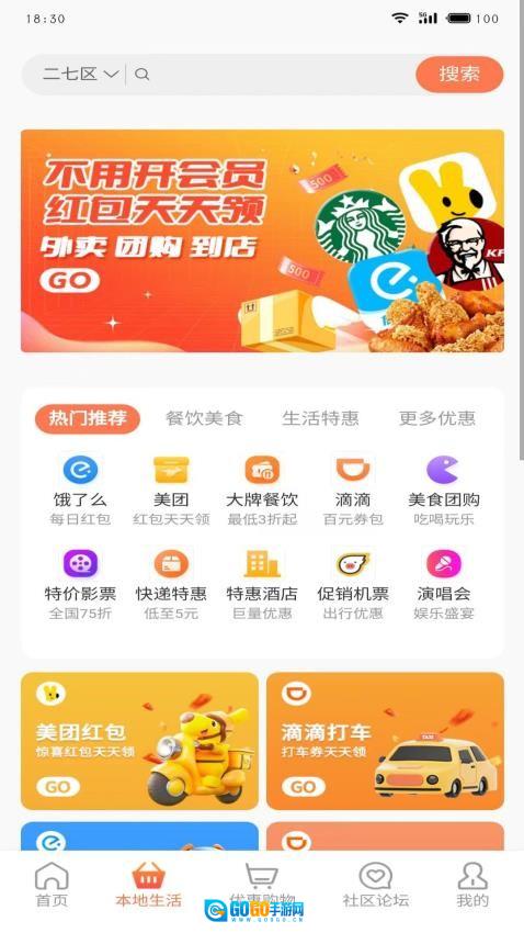 软件为用户提供了点外卖、打车、订酒店等多种本地生活服务。