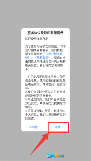 1. 于服务协议及隐私政策窗口点击“同意”,便可进入应用。