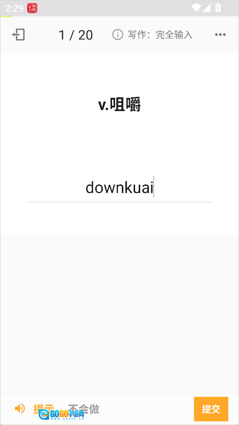 5、完全输入:依据单词的中文意思进行拼写,这与传统的听写方式不同,主要考查的是对单词含义与拼写相结合的能力。