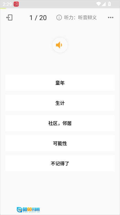 3、听英辨义:聆听单词发音,从中选择对应的中文含义,以此考查对单词发音及其核心含义的双重掌握水平。