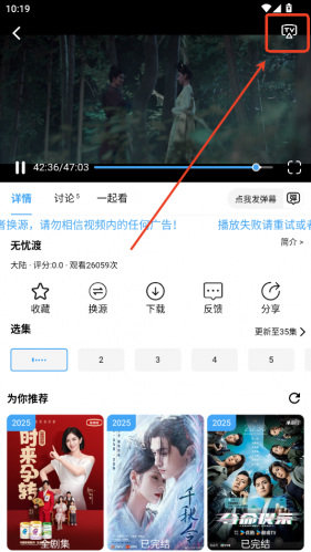 2、点击右上角TV投屏。