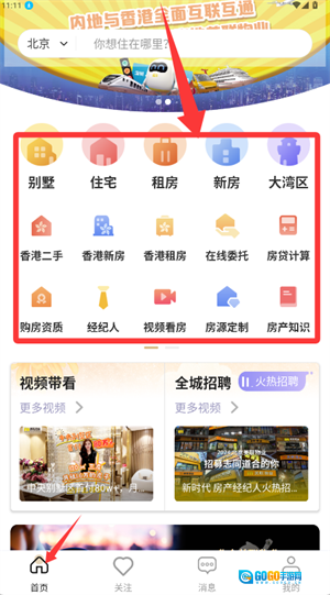2. 在首页挑选别墅、住宅或者租房等类别,随即就能进入相应版块进行浏览。