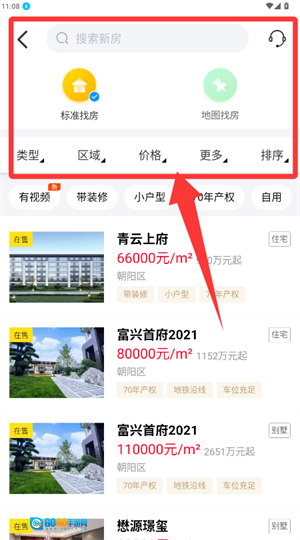 3、依据房源类型、所在区域以及价格范围等条件,筛选出理想的房源。