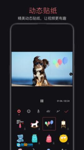 增添动态贴纸,随心自定义文本与字幕,海量潮流音乐任你挑选,还能导入本地音乐哦!