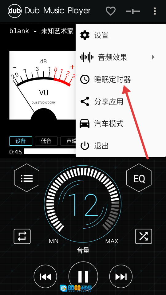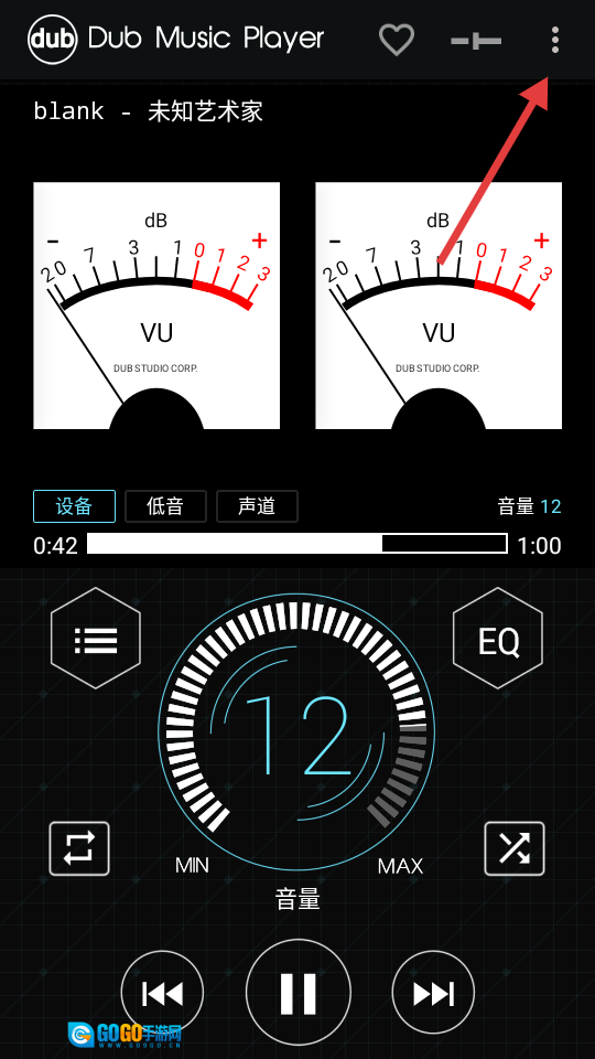 2. 在Dub音乐播放器的界面上,点击右上角的【三点】图标,即可展开功能菜单。