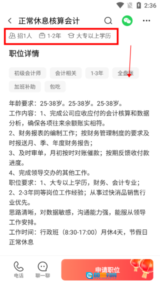 4、若遇到心仪职位,点击即可进入。页面上方能查看招聘要求,下方则呈现具体职位详情。若觉得合适,可点击“申请职位”,随后等待 HR 回复。