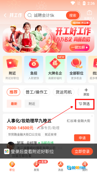 3、点击“筛选”,即可进入筛选界面,依据设定条件进行精准筛选,过滤掉不符合条件的招聘信息。