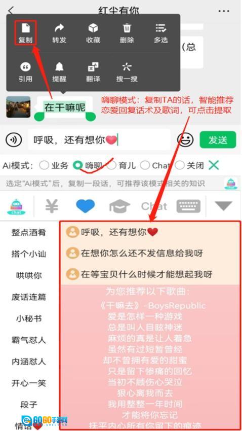 4、只需一键复制问题,就能快速搜索回复话术,轻松避免陷入聊天窘境。