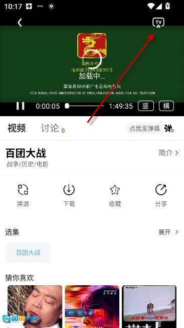 点击带有上交标识的TV图标,即可实现电视投屏播放。