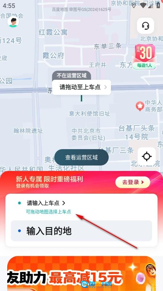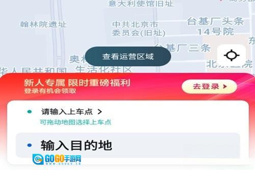 1. 开启萝卜快跑应用,在界面上找到并点击输入上车地点以及目的地的区域。