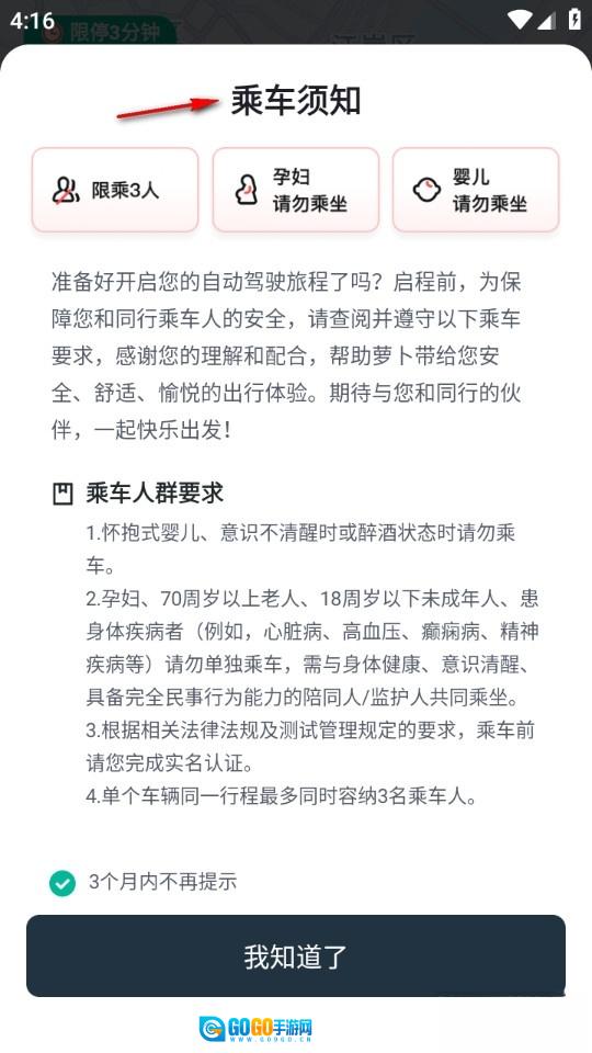2、选好正确地点后,点击“立即呼叫”,同时勾选“我知道了”,接着只需等待车辆抵达就行。
