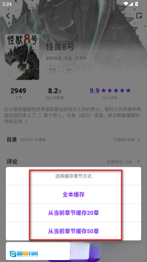 3. 挑选并点击所需的缓存章节方式。