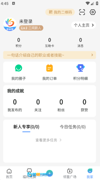 4. 轻点页面下方的“我家”,就能看到我的圈子、我的订单、积分明细等功能。