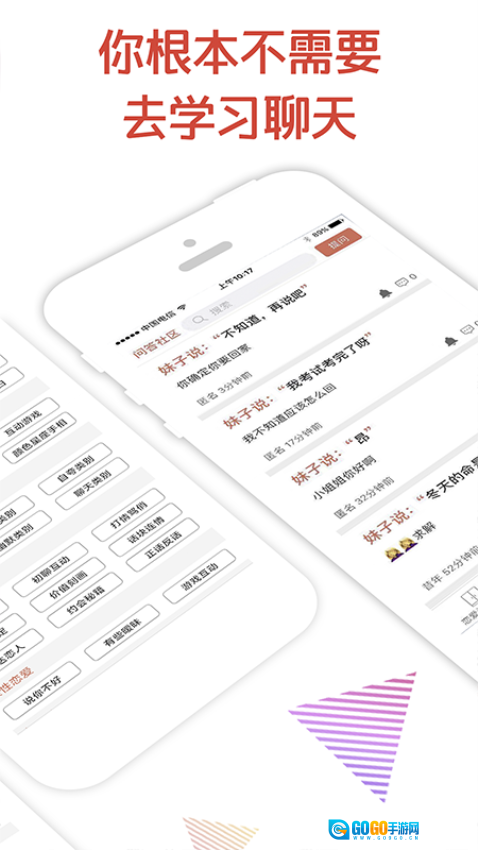 能够帮助用户提升恋爱聊天技巧,使用户能够轻松且幽默地与人展开聊天互动。