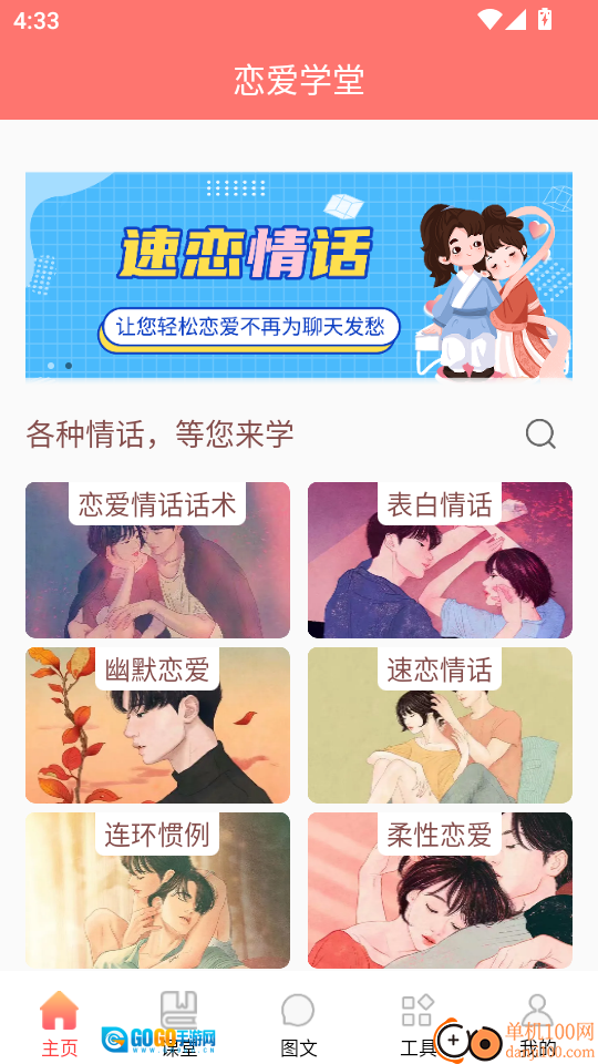 恋爱学堂最新版,是一个汇聚海量精选话术聊天资源的平台。软件内的话术教程资源统统免费开放,可供用户随意使用,平台不存在任何收费项目。无论是独具匠心的挽回聊天方法,还是实用的恋爱话术技巧,亦或是丰富的约会经验分享,以及大量恋爱干货知识,在这里都应有尽有。有需要这款软件的用户,可在本站免费获取。