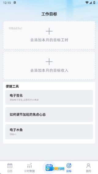 4、于工作目标页面,能够添加本月的目标工时、目标收入,以及各类便捷工具。