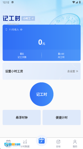 1. 打开软件后,不仅能够查看详细的记工时信息,还能对小时工工资进行设置,与此同时,还可体验悬浮时钟与便捷计时功能。
