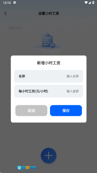 2、于设置小时工工资的页面里,点击“+”号,接着输入名称与小时工工资,随后保存就行。