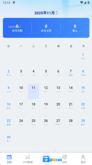 3、于日历页面,能够知晓小时工本月工作天数、本月工时以及收入等相关信息。