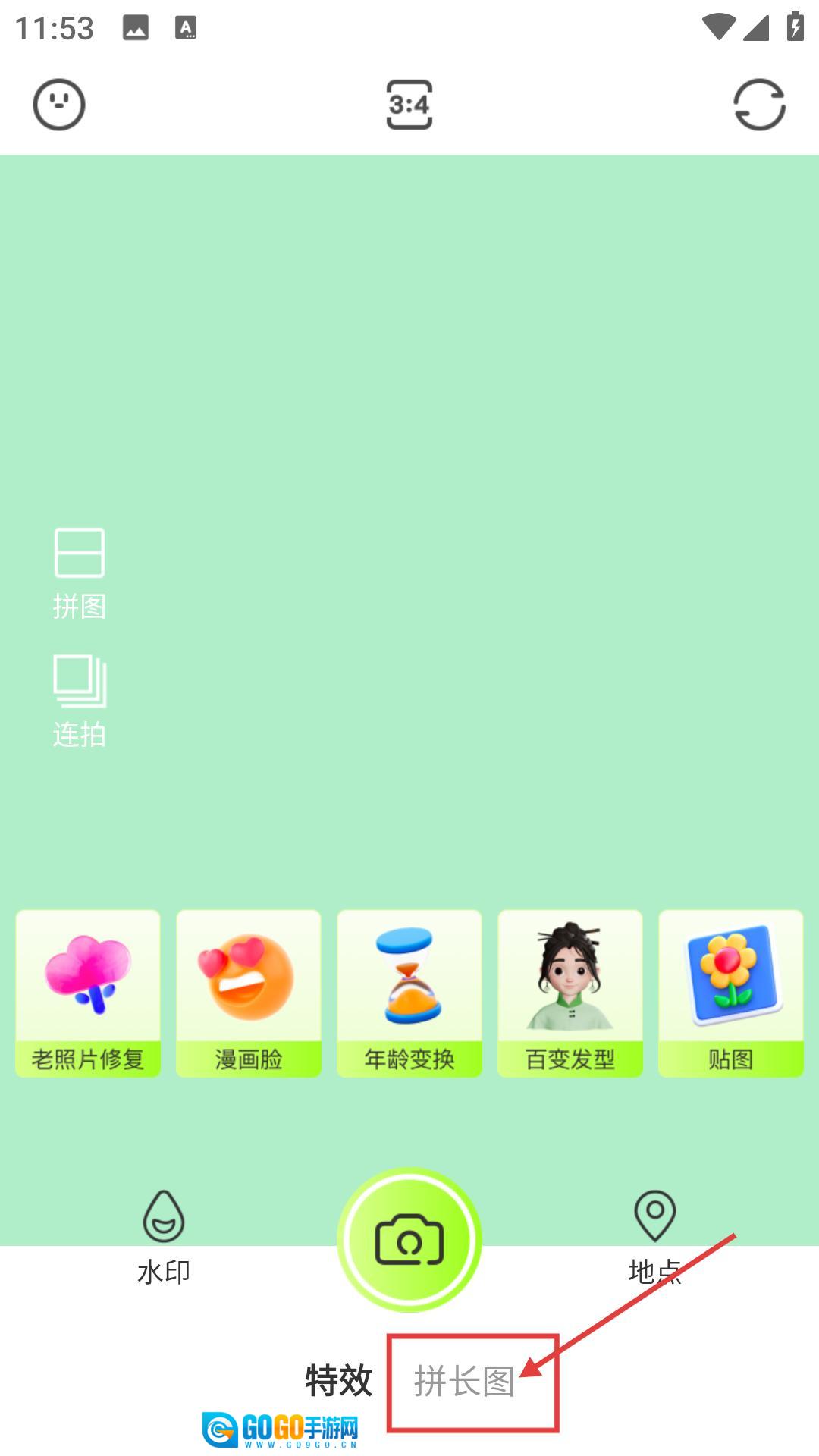 1. 在主界面上,点击【拼长图】这一选项,就能进入图片拼接功能的界面,进而开始长图的制作。