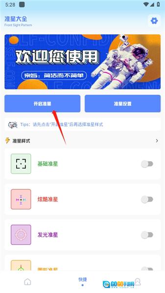 2、进入快捷界面,在此处能够设置准星样式,挑选一款美观且实用的准星并开启,接着完成一个小任务。