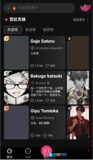 2. 热门榜、新进榜、趋势榜清晰呈现,助你轻松发现备受欢迎的AI角色,或是探索新上线的独特角色,始终保持互动的新鲜感。