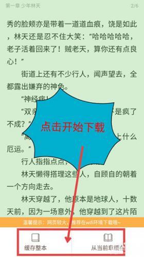 4、点缓存后会弹出一个缓存选项,是缓存整本还是缓存当前章节。