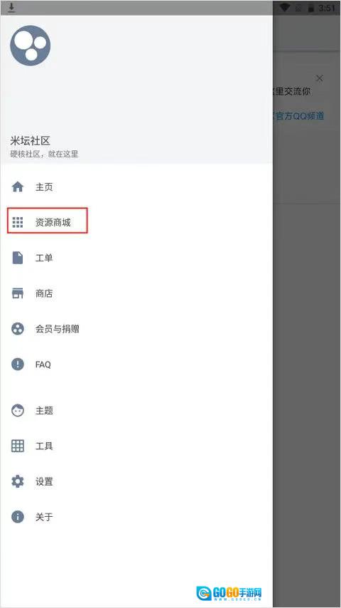 1、先进入米坛社区,接着点击位于左上角的图标。
