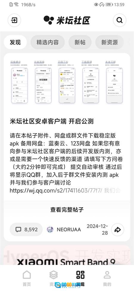 米坛社区中文版,是一个聚焦智能穿戴设备的优质交流平台,特别契合小米、华为等品牌手环及手表的用户。该应用不但提供全方位的设备资讯、固件更新动态以及使用技巧,还具备清晰明了的内容发布体系:要是用户想要发布问答、讨论、教程或者反馈等非资源类内容,只需点击“发布帖子”,就能进入相应板块并选择标签。而要是打算分享表盘、插件、主题等原创资源,那么通过“发布资源”通道提交即可,整个流程规范,分类清晰,这在很大程度上提高了社区内容的组织效率,优化了用户的获取体验。