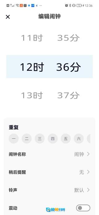 2. 点击“闹钟添加”,接着选择时间,并设置具体的各项参数。