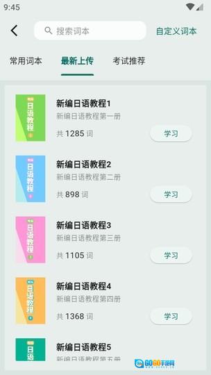 2、登录之后进入App首页,便能看到常用词汇书、考试推荐、热门教材以及初高中日语教材等内容。