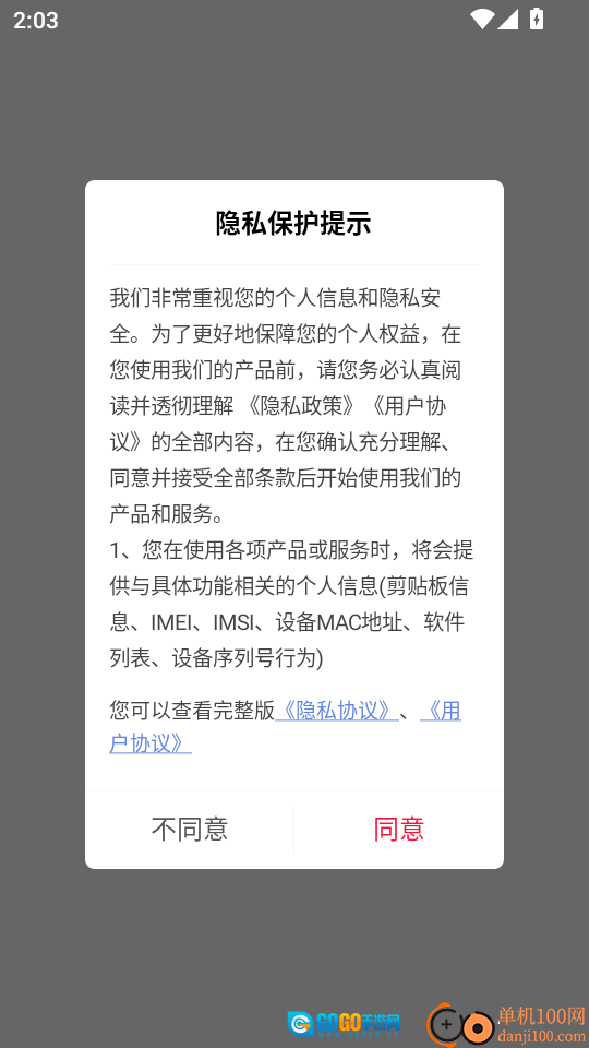1. 第一步,打开软件,阅读“隐私保护提示”,随后点击“同意”按钮,即可进入。