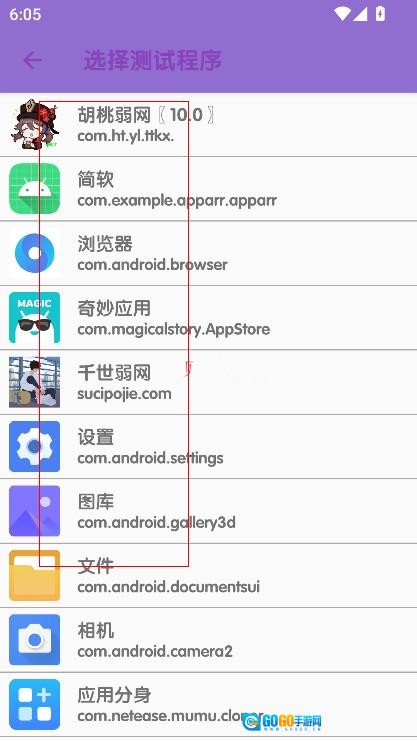 2. 挑选出需要进行测试的应用。