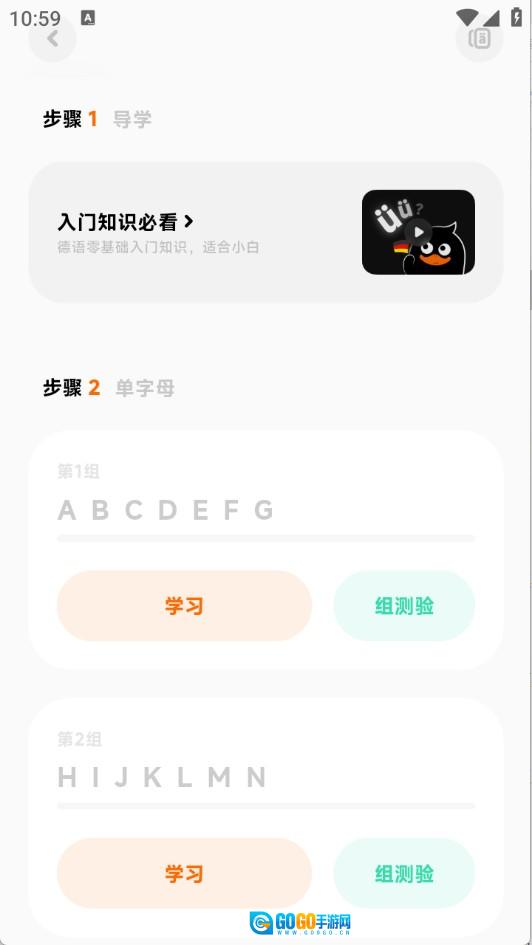 1. 从德语字母的基础知识点起步展开学习,助力用户快速且有效地掌握德语发音与拼读技巧。