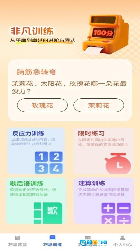1. 轻点底部的【巧思训练】选项,即可进入巧思训练页面。