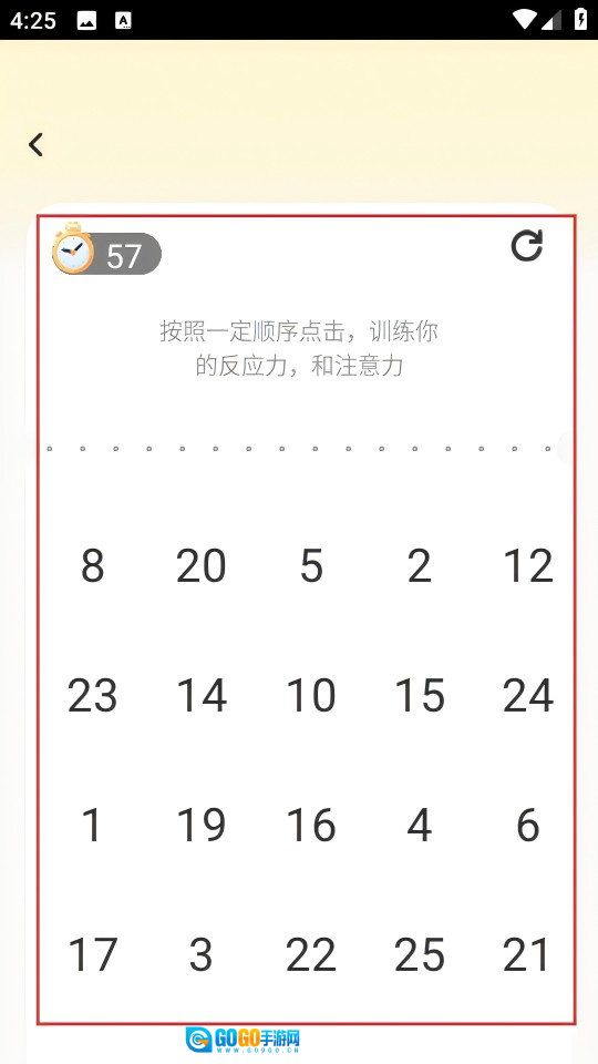 4、于训练界面依照从小到大的顺序点击数字,并在规定时间内完成训练。