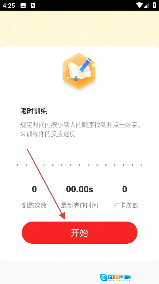 3、于限时训练页面,点击【开始】按钮,即可进入数字点击训练界面。