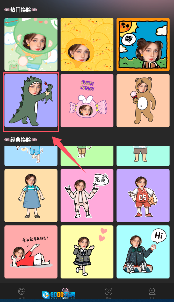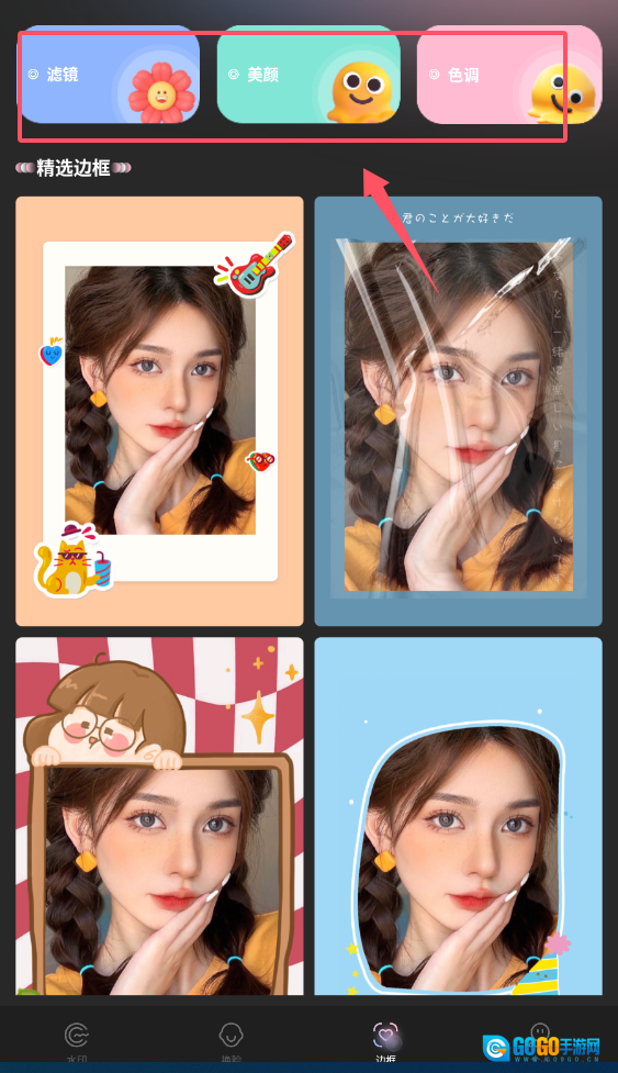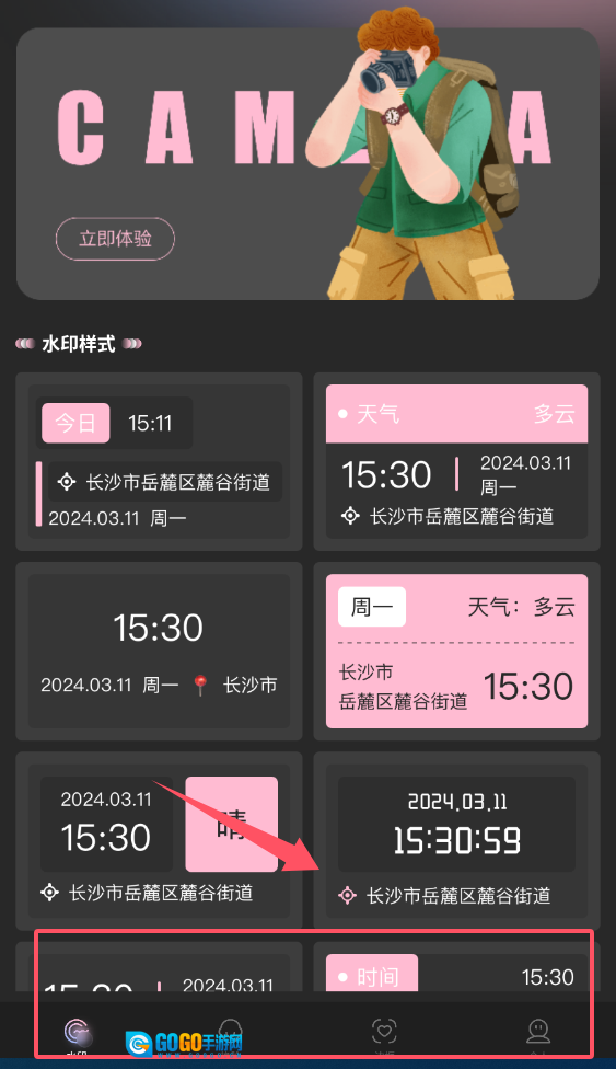 2、ToonMe相机中所有的相机摄影模板均可直接使用,并且还能制作专属水印。