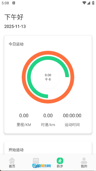 4. 轻点页面下方的“跑步”选项,就能查看今日的运动数据。