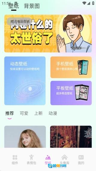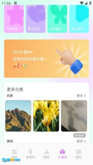 3、头像分为情侣、男生、女生、动漫这几类,壁纸则按美女、帅哥、动物、风景等进行分类。