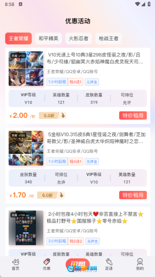 2、优惠页面呈现了各式各样的优惠活动,助你及时知晓不同活动的精彩之处。
