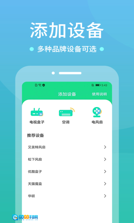 对自行添加的各类家电设备实施管理,能够随意切换家电设备来开展遥控操作。