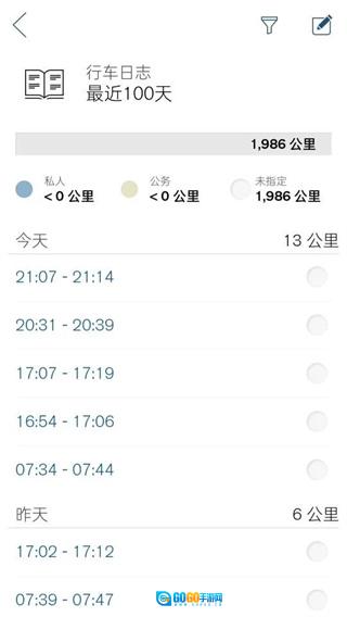 呈现的是近100天里,每次从点火至熄火过程中的行程信息。