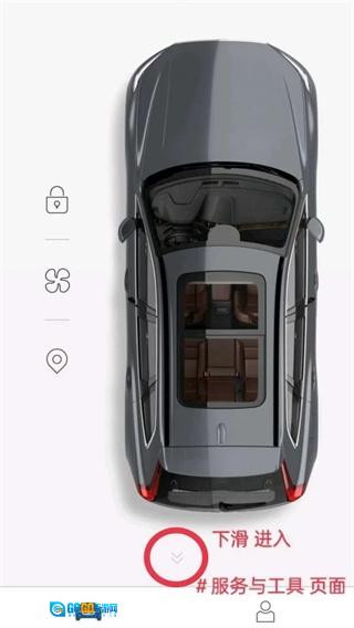 5、返回首页,在车辆下方有一个下滑按钮,点击它能够进入到另一个功能较为强大的页面。