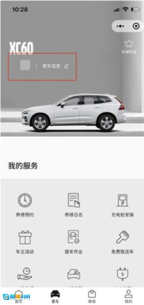 1、第一步,通过我们自行注册的主账号登录沃尔沃汽车世界,接着点击“爱车”板块。