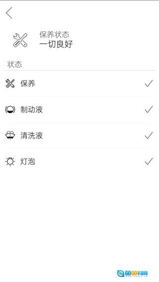 C:保养状态涵盖保养、制动液、清洗液、灯泡这四大主要项目。