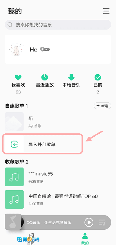 1. 第一步,登录个人账号,于“我的”界面中点击“导入外部歌曲”。