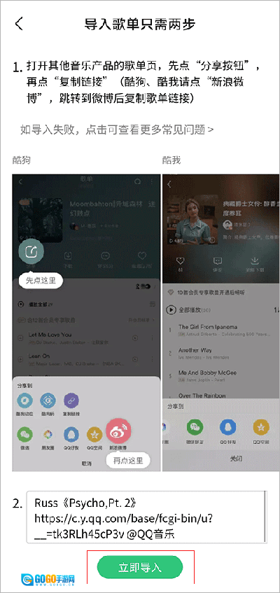 3、完成复制后,把链接粘贴至下方(2.)的空白处,接着点击“立即导入”。