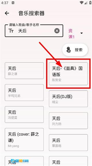 3、于搜索结果里,挑选心仪歌曲版本的天后,便能开展后续操作。