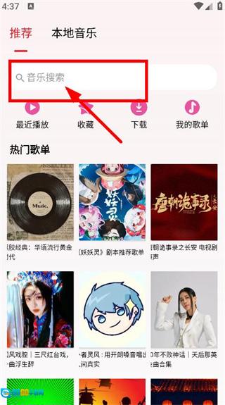 1. 于首页处,点击音乐搜索框,从而进入音乐搜索器页面。